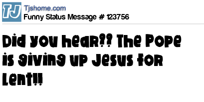 X says Did you hear?? The Pope is giving up Jesus for Lent!!