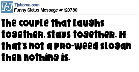 X says The couple that laughs together, stays together. If that's not a pro-weed slogan then nothing is.