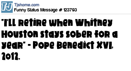 X is "I'll retire when Whitney Houston stays sober for a year" - Pope Benedict XVI, 2012.