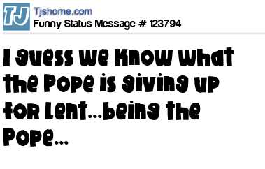 X is I guess we know what the Pope is giving up for lent...being the Pope...