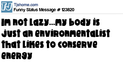 X says im not lazy...my body is just an environmentalist that likes to conserve energy