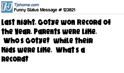 X Last night, Gotye won Record of the Year. Parents were like, “Who’s Gotye?” while their kids were like, “What’s a record?