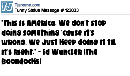 X "This is America. We don't stop doing something 'cause it's wrong. We just keep doing it til it's right." - Ed Wuncler (The Boondocks)