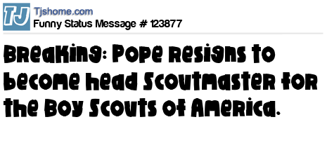 X Breaking: Pope resigns to become head Scoutmaster for the Boy Scouts of America.