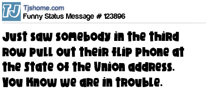 X Just saw somebody in the third row pull out their flip phone at the State of the Union address. You know we are in trouble.