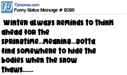 X Winter always reminds to think ahead for the springtime...meaning...gotta find somewhere to hide the bodies when the snow thaws.......