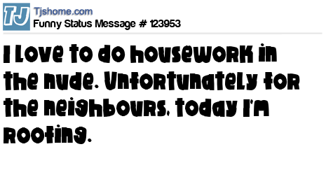 - # 159538 I love to do housework in the nude. Unfortunately for the neighbours, today I'm roofing.