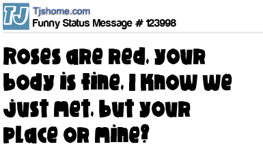 X is Roses are red, your body is fine, I know we just met, but your place or mine?