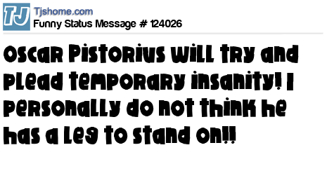 - # 124009 Oscar Pistorius will plead not guilty, but I don't think he has a leg to stand on.