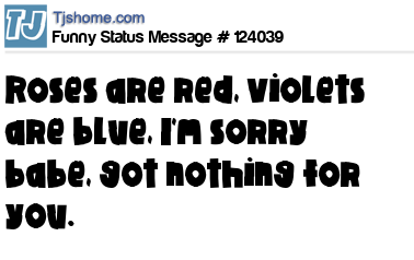 X is roses are red, violets are blue, I'm sorry babe, got nothing for you.
