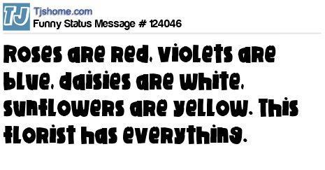 X says Roses are red, violets are blue, daisies are white, sunflowers are yellow. This florist has everything.