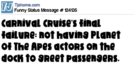 X is Carnival Cruise's final failure: not having Planet Of The Apes actors on the dock to greet passengers.