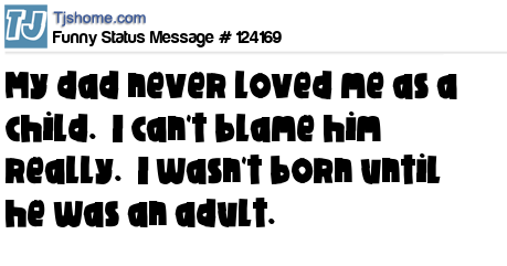 - # 79572 My dad never loved me as a child, you can't really blame him though I wasn't born until he was an adult.