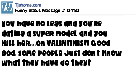 X says You have no legs and you're dating a super model and you kill her....on VALENTINES?! Good god, some people just don't know what they have do they?