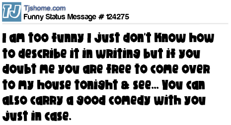 X is I am too funny I just don't know how to describe it in writing but if you doubt me you are free to come over to my house tonight & see... You can also carry a good comedy with you just in case.