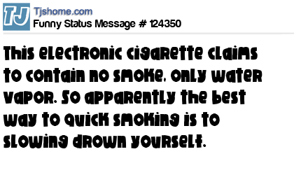 X This electronic cigarette claims to contain no smoke, only water vapor. So apparently the best way to quick smoking is to slowing drown yourself.