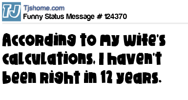 X says According to my wife's calculations, I haven't been right in 12 years.