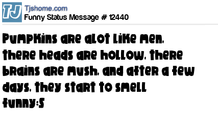 X is pumpkins are alot like men, there heads are hollow, there brains are mush, and after a few days, they start to smell funny:S