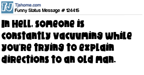 X In Hell, someone is constantly vacuuming while you're trying to explain directions to an old man.