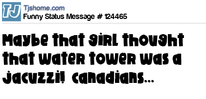 X is maybe that girl thought that water tower was a jacuzzi! canadians...