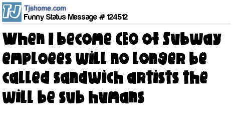X is when I become CEO of Subway emploees will no longer be called sandwich artists the will be sub humans