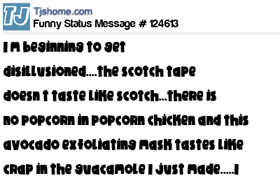 X I’m beginning to get disillusioned....the scotch tape doesn’t taste like scotch...there is no popcorn in popcorn chicken and this avocado exfoliating mask tastes like crap in the guacamole I just made.....I guess I’ll go try some hash browns....