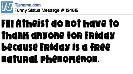 X says FYI Atheist do not have to thank anyone for Friday because Friday is a free natural phenomenon.