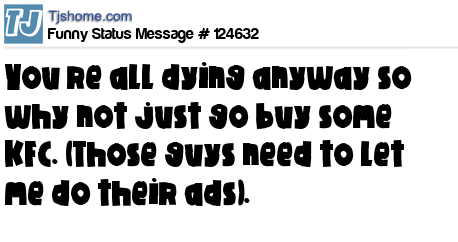 X says You’re all dying anyway so why not just go buy some KFC. (Those guys need to let me do their ads).