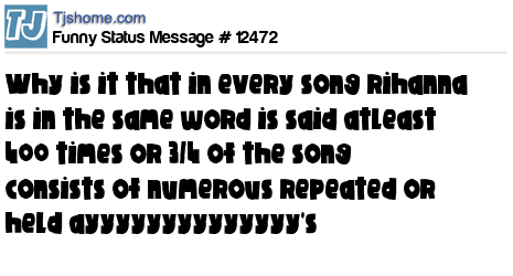 X says why is it that in every song rihanna is in the same word is said atleast 400 times or 3/4 of the song consists of numerous repeated or held ayyyyyyyyyyyyyy's