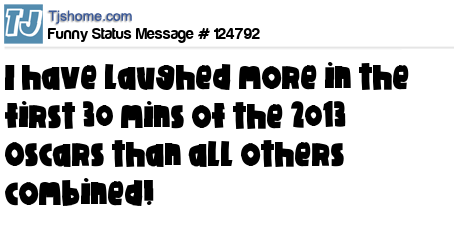 X is I have laughed more in the first 30 mins of the 2013 Oscars than all others combined!