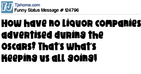 X says How have no liquor companies advertised during the Oscars? That's what's keeping us all going!