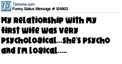 X says My relationship with my first wife was very psychological...she's psycho and I'm logical.....