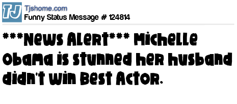 X  ***News Alert*** Michelle Obama is stunned her husband didn't win Best Actor.