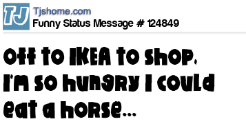 X  Off to IKEA to shop, I'm so hungry I could eat a horse...