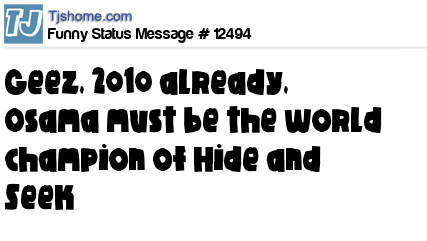 X Geez, 2010 already, Osama must be the world champion of Hide and Seek
