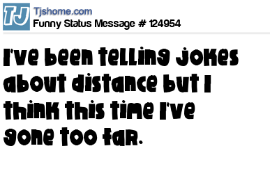 X is I've been telling jokes about distance but I think this time I've gone too far.