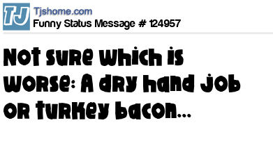 X Not sure which is worse: A dry hand job or turkey bacon...