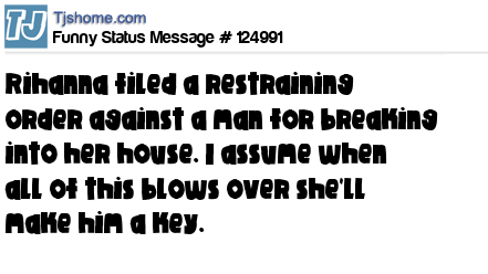 X says Rihanna filed a restraining order against a man for breaking into her house. I assume when all of this blows over she'll make him a key.