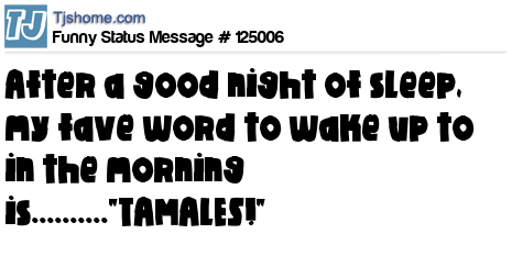 X After a good night of sleep, my fave word to wake up to in the morning is.........."TAMALES!"