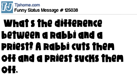 X is What’s the difference between a rabbi and a priest? A rabbi cuts them off and a priest sucks them off.