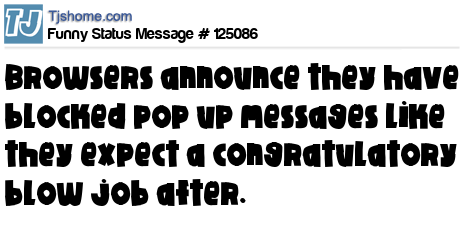 X says Browsers announce they have blocked pop up messages like they expect a congratulatory blow job after.