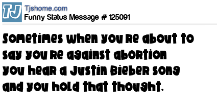 X says Sometimes when you’re about to say you’re against abortion you hear a Justin Bieber song and you hold that thought.