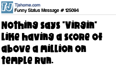 X says Nothing says "Virgin" like having a score of above a million on temple run.