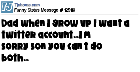 X is Dad when I grow up I want a twitter account…I’m sorry son you can’t do both…