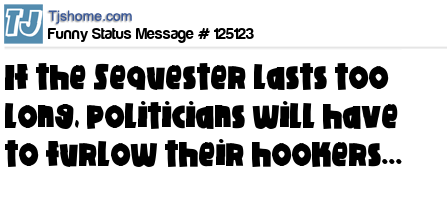 X says if the Sequester lasts too long, politicians will have to furlow their hookers...