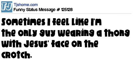 X says Sometimes I feel like I'm the only guy wearing a thong with Jesus' face on the crotch.