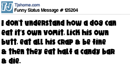- # 125206 I really don't understand how a dog can eat it's own vomit, lick his own butt, eat all his shi t and be fine and then they eat half a candy bar and die.