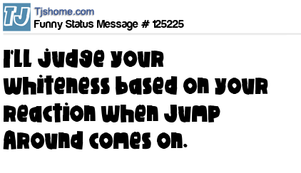 X says I'll judge your whiteness based on your reaction when Jump Around comes on.