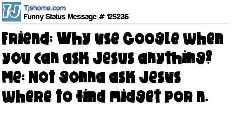 X says Friend: Why use Google when you can ask Jesus anything? Me: Not gonna ask Jesus where to find midget por n.