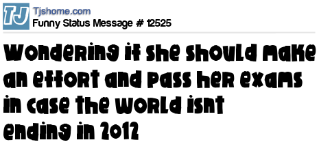 X is wondering if she should make an effort and pass her exams in case the world isnt ending in 2012